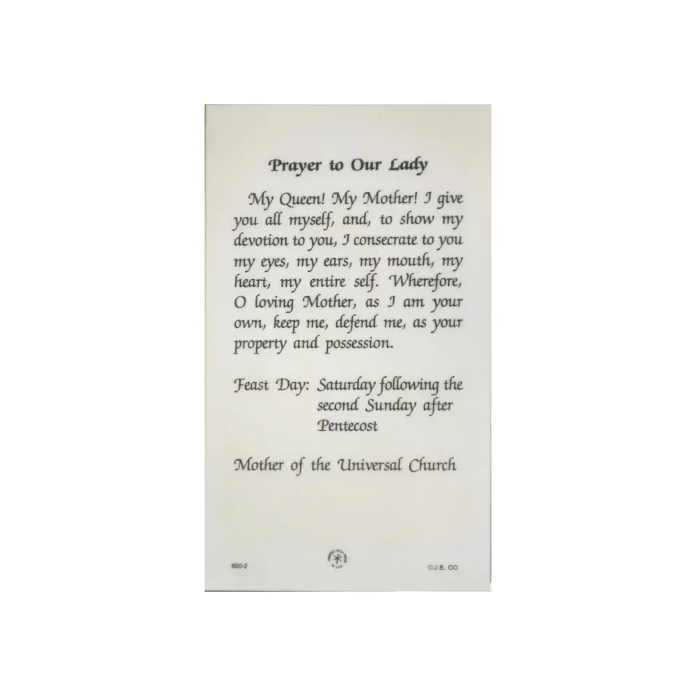 Sacred Heart Of Mary Laminated Prayer Card, 110 x 70mm, Has the Prayer To Our Lady on the reverse side of this card