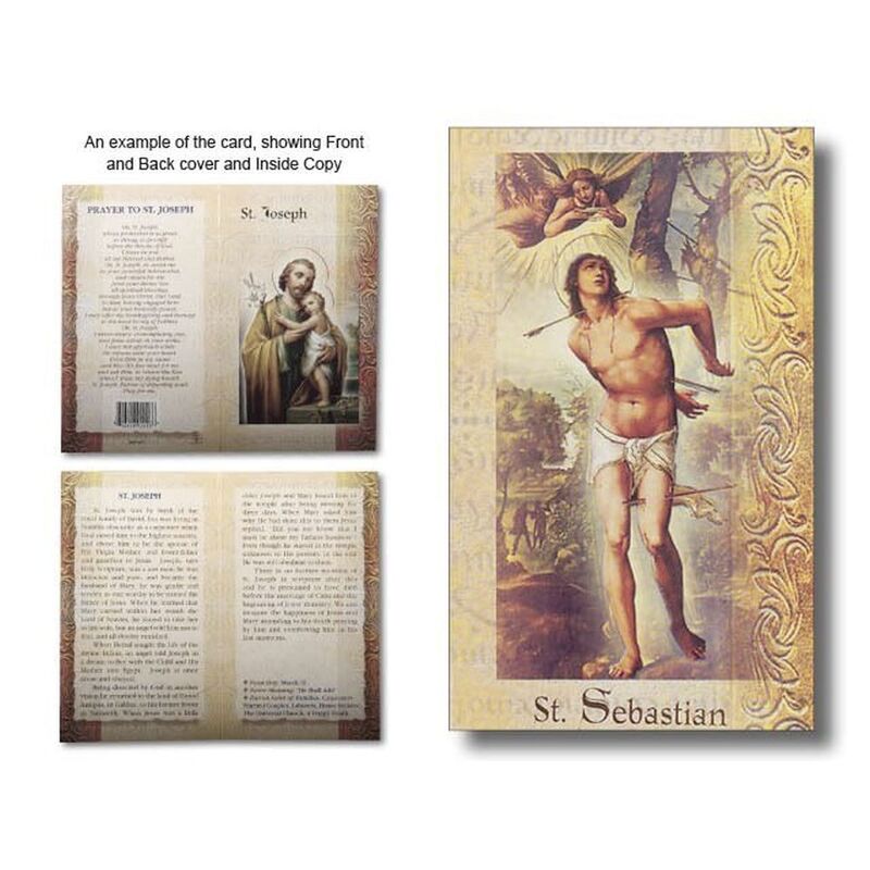 Saint Sebastian Biography Card 80 x 135mm Folded, Gold Foiled (Image design may vary)