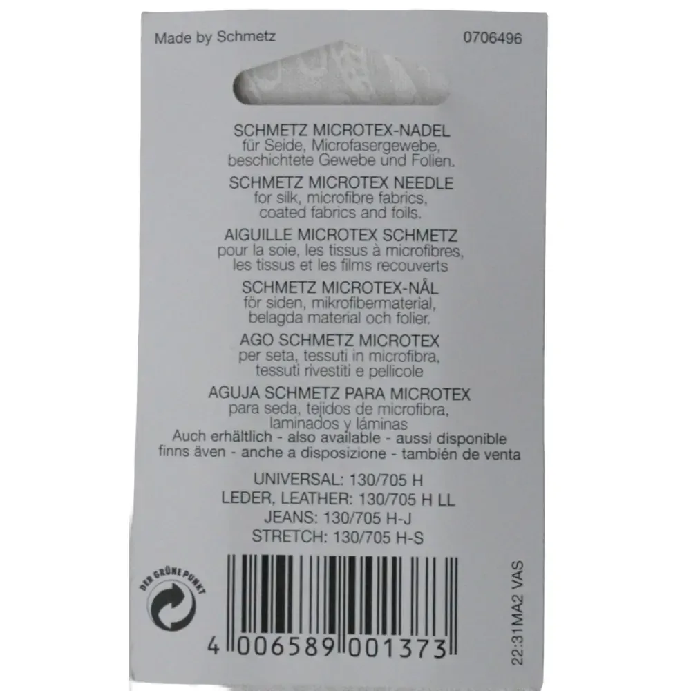 Schmetz Sewing Machine Needles MICROTEX Size 60 / 8, Pack of 5 Needles, System 130/705H-J suits most domestic sewing machines