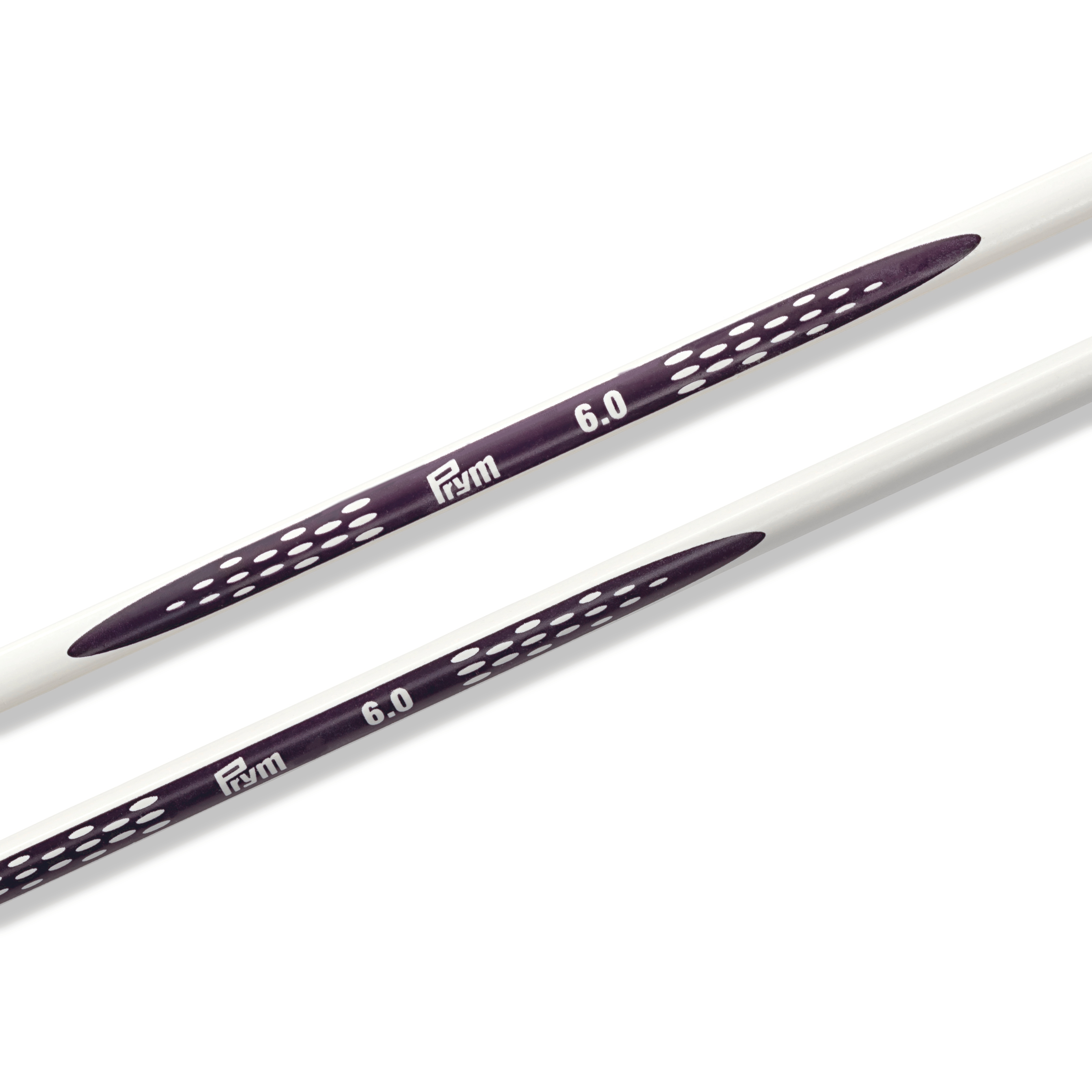 The innovative prym.ergonomics single-pointed knitted needles are a synonym for ease of knitting. The alabaster white knitting needles are made from high-performance synthetic material and are light and flexible and sit comfortably in the hand. The drop-shaped points make the single-pointed knitted needles ideal for beginners, since the yarn slides so easily over the points and picking up the yarn becomes extremely easy. The shaft of the needle is rounded at the front and changes to a triangular cross-section - this allows the stitches to glide freely and easily. The click heads are brilliantly designed to keep two needles together as a pair on one hand and on the other they serve as stitch stoppers. The needle gauges are printed centrally on the needles. All in all: The prym.ergonomics single-pointed knitted needles offer pure knitting joy, even when used over long periods.