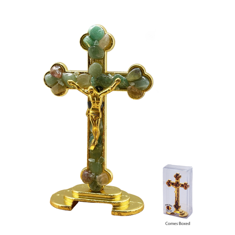 Standing 75 x 45mm AGATE Gem Stone Crucifix, Gold Tone