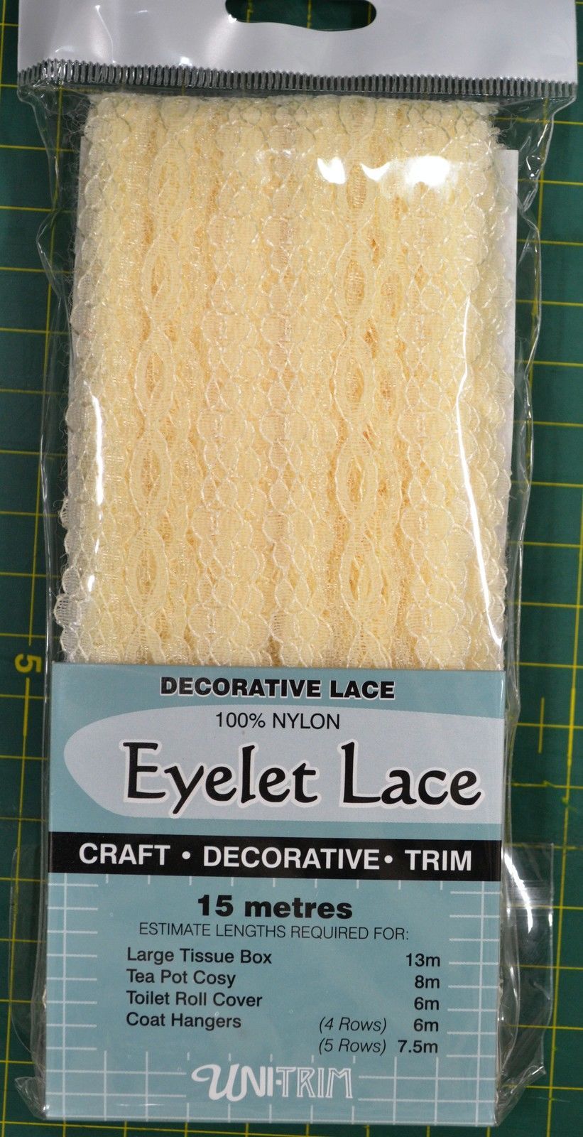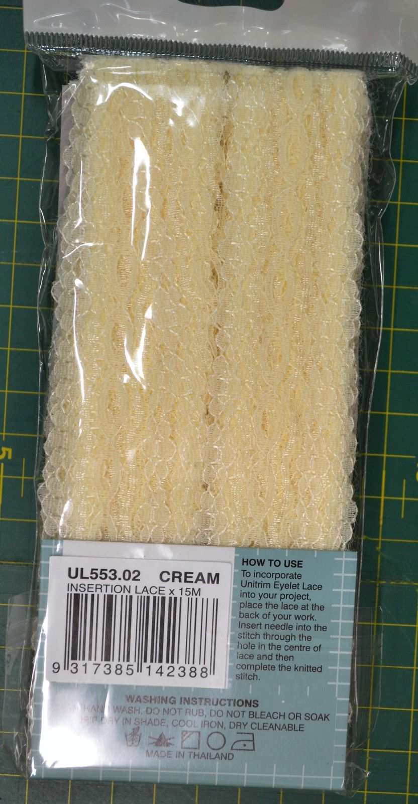 Uni Trim CREAM Eyelet Lace 30mm x 15m, Insertion Lace Knitting Lace, 100% Nylon