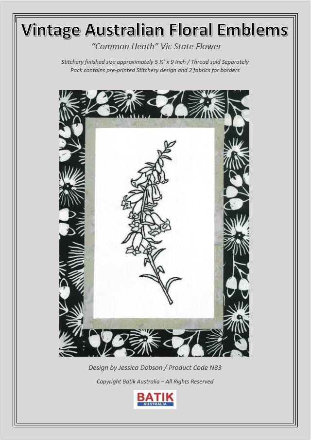 Batik Australia - Vintage Australian Floral Emblems Stitchery Kit - N33 Commom Heath, Victoria State Flower