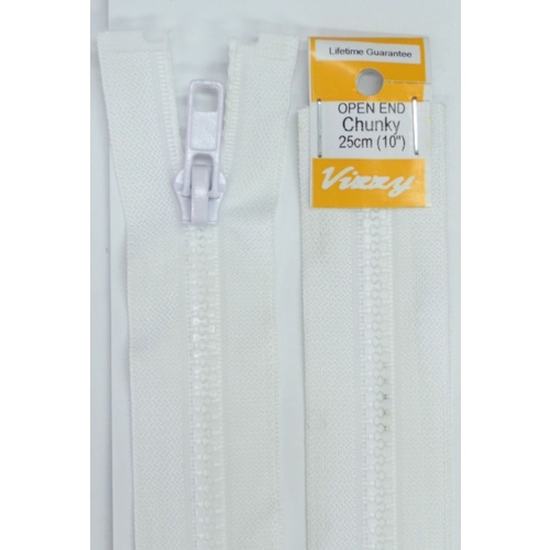 Vizzy Chunky Open End Zip 25cm, Colour 01 WHITE, A Quality Brand Name Zipper.