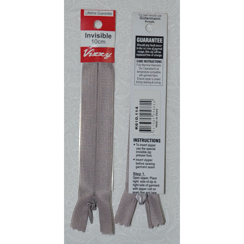 Vizzy Invisible Zip 10cm, Colour 114 SCHOOL GREY, A Quality Brand Name Invisible Dress Zipper