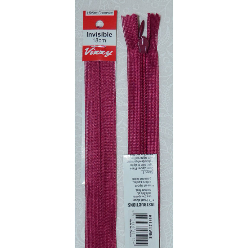 Vizzy Invisible Zip 18cm, Colour 74 WINE, A Quality Brand Name Invisible Dress Zipper