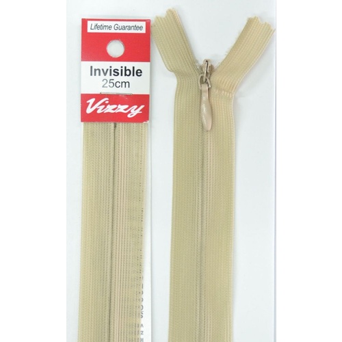Vizzy Invisible Zip 25cm, Colour 07 NATURAL, A Quality Brand Name Invisible Dress Zipper