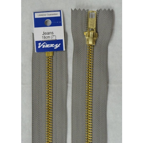 VIZZY JEANS ZIP 18CM PEARL GREY, A Quality Brand Name Jeans Zipper