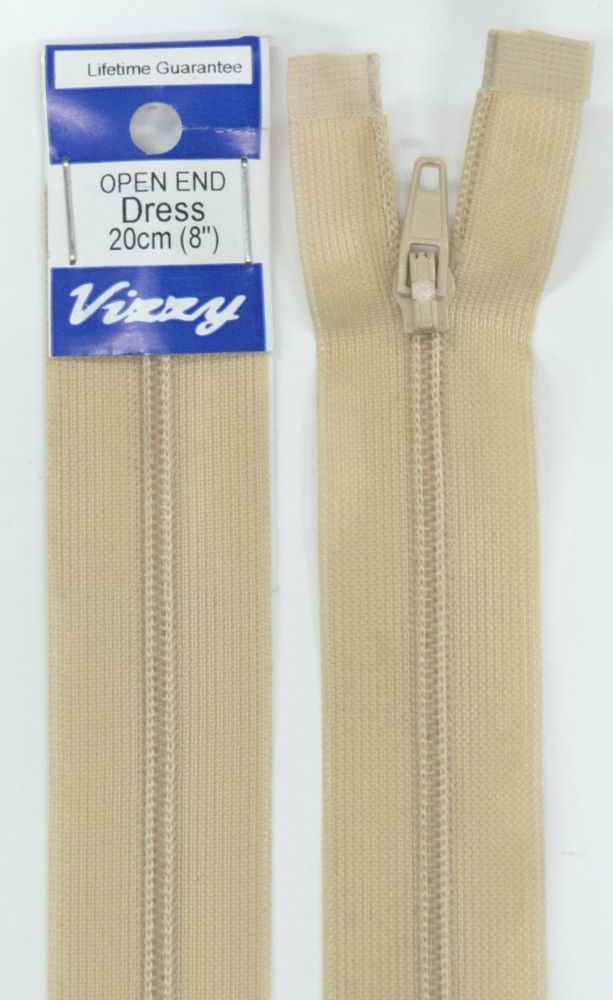 Vizzy Open End Dress Zip 20CM 07 NATURAL, A Quality Brand Name Dress Zipper