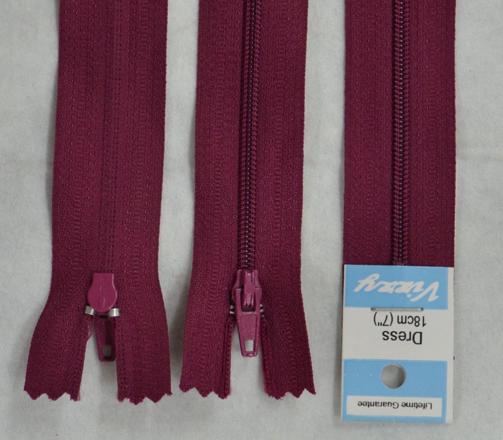 Vizzy Dress Zip, 18cm Colour 34 BURGUNDY, A Quality Brand Name Dress Zipper -