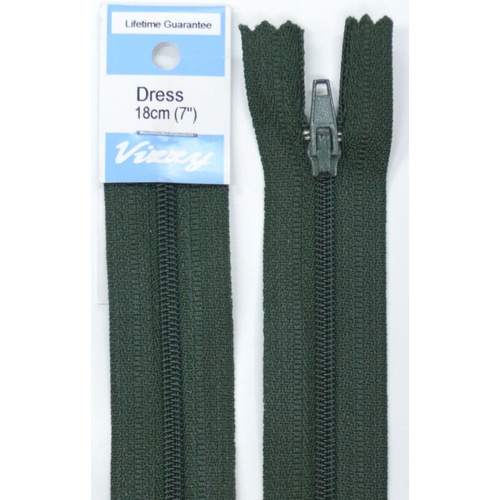Vizzy Dress Zip, 18cm Colour 46 HUNTER GREEN, A Quality Brand Name Dress Zipper