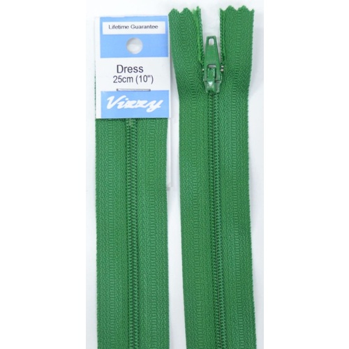 Vizzy Dress Zip, 25cm Colour 110 EMERALD, A Quality Brand Name Dress Zipper