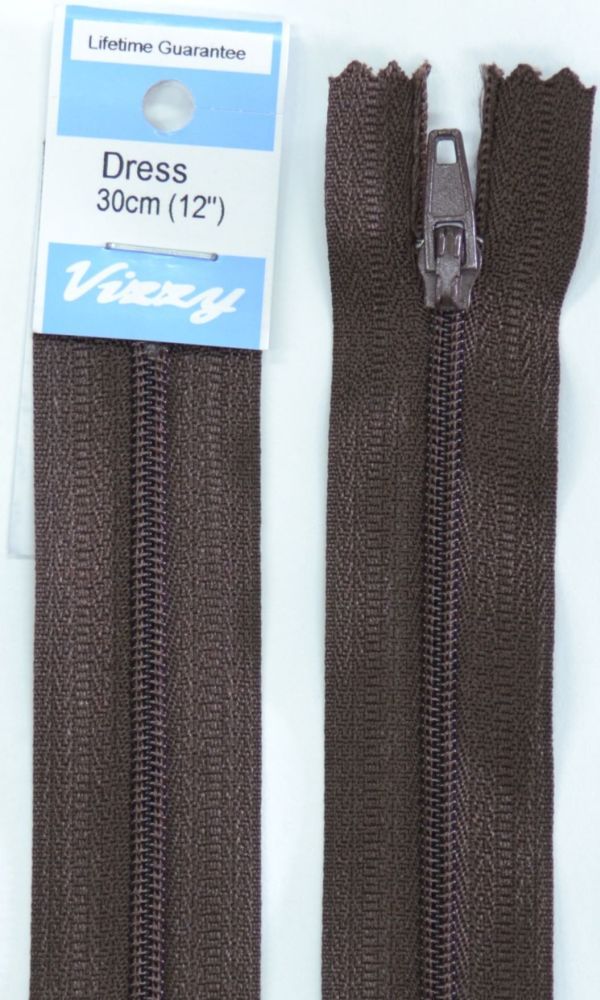 Vizzy Dress Zip, 30cm Colour 14 BROWN, A Quality Brand Name Dress Zipper