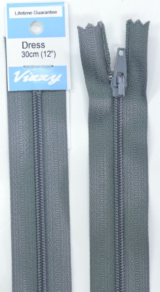 Vizzy Dress Zip, 30cm Colour 62 GREY, A Quality Brand Name Dress Zipper