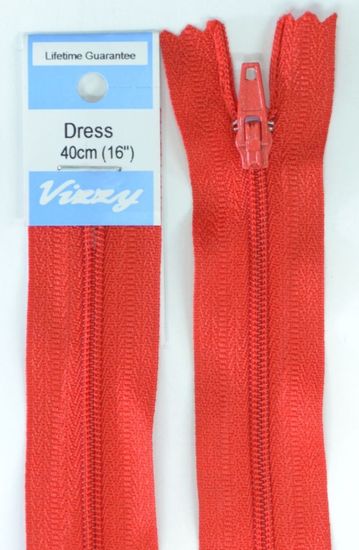 Vizzy Dress Zip, 40cm Colour 31 RED, A Quality Brand Name Dress Zipper