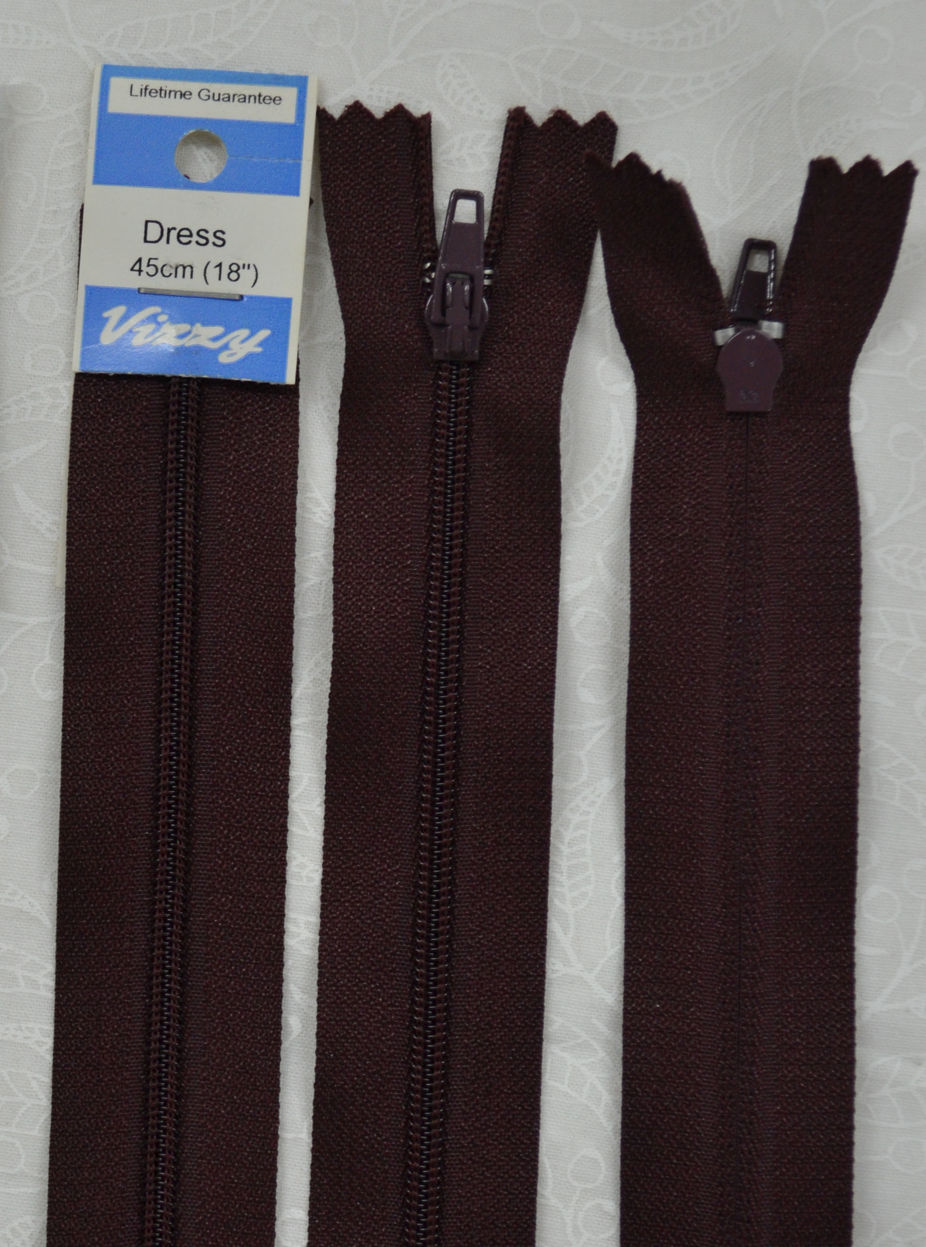 Vizzy Dress Zip, 45cm Colour 36 MAROON, A Quality Brand Name Dress Zipper