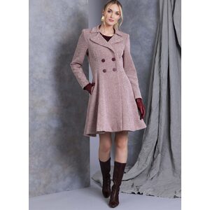 Lined, fitted coat has double-breasted buttoned or snap closing, princess seams and shoulder pads. View A: Contrast upper collar. View E: Contrast fake fur upper collar. Sew Rating: Easy.